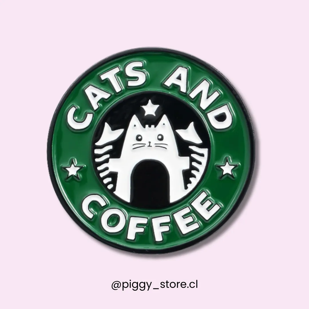 Pin metálico inspirado en el diseño de Starbucks con el logo modificado, donde el protagonista es un adorable gato. Fabricado con acrílico esmaltado de alta calidad y broche de goma reforzado, es el accesorio perfecto para quienes disfrutan de un buen café acompañado de la compañía de un gato.